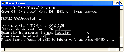 [B]の部分は、通常、a(フロッピーディスクのドライブ名)を入れ、